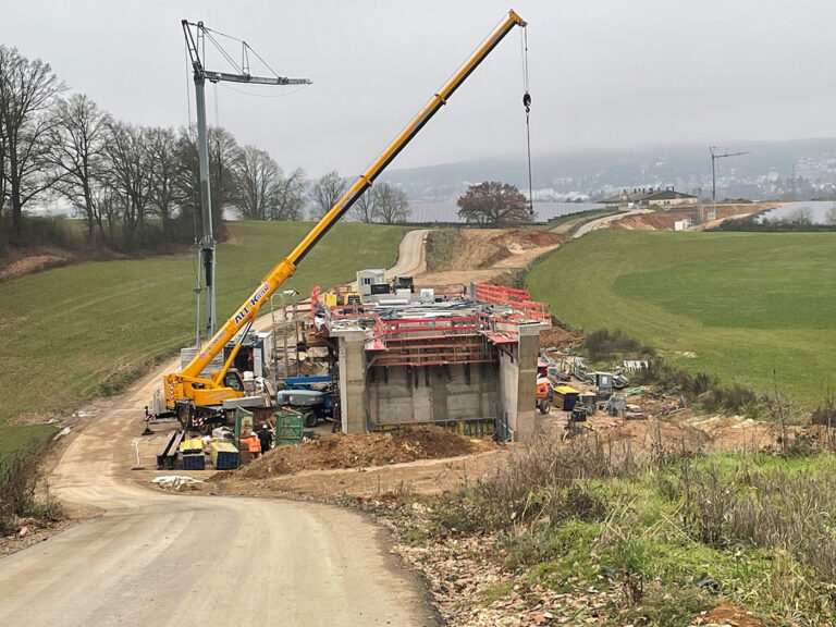Der Bau der Straße erfolgt abschnittsweise von Süden nach Norden, dabei wird die Trasse überwiegend in sog. Einschnittslage hergestellt, so dass eine gute Einbindung ins Landschaftsbild und zugleich ein wirksamer, weit über die gesetzlichen Anforderungen hinausreichender, Lärmschutz erzielt wird. Im Zuge des Straßenbauvorhabens sind insgesamt acht Brückenbauwerke zur Querung vorhandener Verkehrswege und Gewässer geplant.